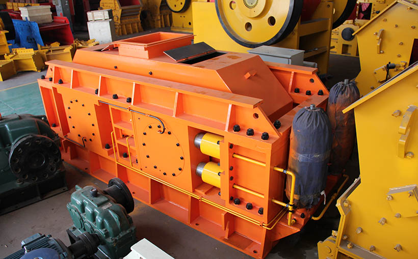 對輥破碎機主要由輥輪、輥輪支撐裝置、壓緊和調節裝置、再加上驅動裝置組成,液壓輥式破碎機在多加了一個液壓系統(保護裝置)。下面上山友重工工廠生產的對輥式破碎機: